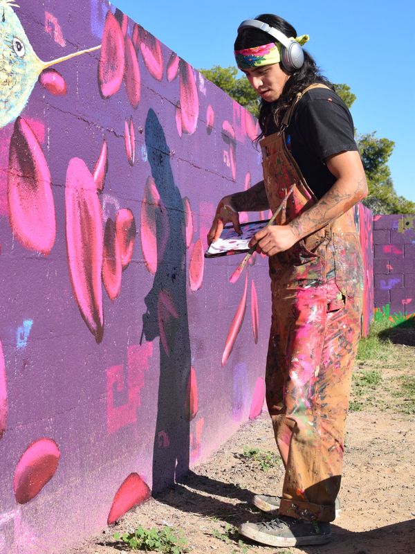 painting Murals in the ValleyLife of the sun since 2018. ArizonaLife. Art influenced me growing up .My hearts passion continues to uplift my people and my community. I come from Guadalupe, Arizona YOEME Yaqui Pueblo. Beauty in cultural identity is the reason I started doing Murals. Indigenize the world and the way people think of us Natives, the Original care takers of this Land .Wake up the Giant is the Heart goal. Much Love!